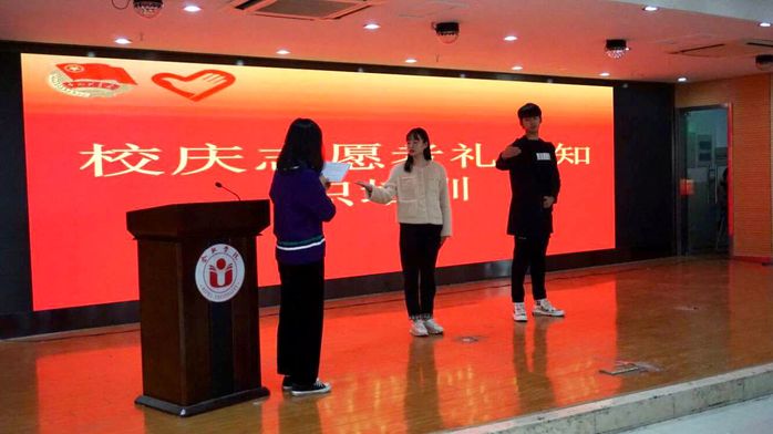 青年志愿者聯合會趙可欣同學向全體志愿者詳細介紹了我校校情校史。接著優秀志愿者代表交流分享了志愿服務的心得和經驗,他們認為,志愿活動的歷練是人生寶貴的財富,希望各位校慶志愿者們能互相合作,共同努力,圓滿完成此次任務。禮儀隊顧子菡同學介紹了志愿服務禮儀常識、待人接物、著裝規范等內容。汪朋對志愿者組織紀律等進行介紹。
