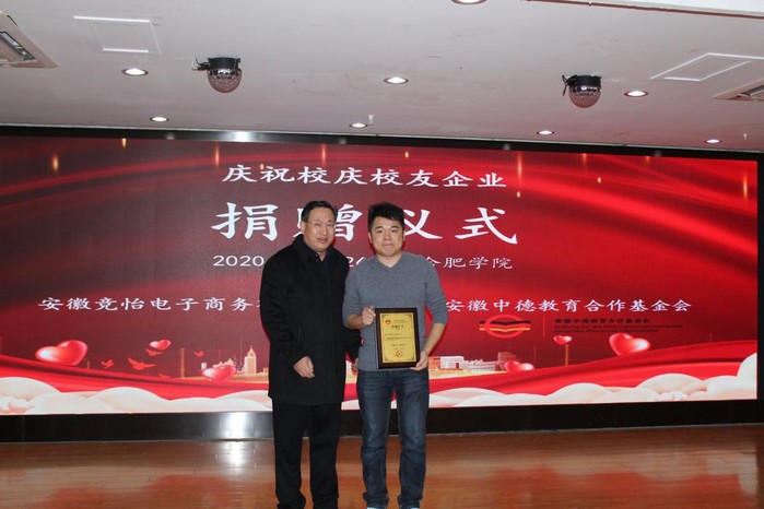 捐贈儀式后,宣躍文代表學校歡迎優秀畢業校友吳銳返校并介紹了他的個人經歷。吳銳在校期間作為創業典型獲得合肥學院第七屆“十大榜樣”學子榮譽稱號。2014年創立乾越創投,目前擁有控股企業兩百余家,其中包含智能制造企業、電子商務企業等等。2015年創立競怡電商,建成集生產、設計、銷售等一體化的商業體,目前擁有直營公司30余家,擁有自主知識產權數百個,投資數億元建成十萬余平方米產業園。2019年創立掌秒開放平臺,以供應鏈大數據技術,幫助創業者解決全渠道商品交易問題。
