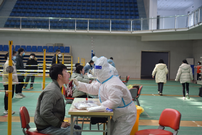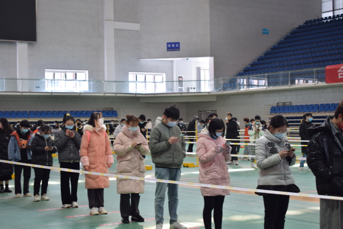 為保證平穩順利開學,此前學校召開了2022年春季學期第一次學生工作例會,綜合考慮當前疫情形勢、防控政策要求和本地本校實際,制定了春季學生返校方案,開展返校疫情防控實戰演練,確保疫情防控領導體制、應急機制、指揮體系高效運行,強化疫情防控部署、指導和督促檢查,多方面完善服務保障工作,為學生平安返校保駕護航。2月16日起,我校為返校師生全面提供了免費核酸檢測。“請同學們戴好口罩,保持一米距離,出示安康碼,先登記后檢測……”在二期體育館內,登記員對學生遞交的安康碼進行掃碼核驗,醫務人員依次采集咽拭子。學子們在核酸檢測區依次排隊、掃碼、登記、檢測,秩序井然。在教師、學生和醫護人員的全力配合下,全校順利完成核酸檢測任務,嚴格做到了“應檢盡檢,不漏一人”。