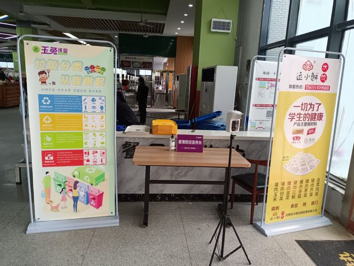 圖書館、教室、食堂、體育館為學生返校做了周密準備,全面清潔消殺,維護基礎設施。19日中午學生食堂準時開伙,煥然一新的菜單欄、精心準備的飯菜、“有序排隊,間隔一米”的地面標識、“一粒米,禾滴汗,粒粒糧食汗珠換”“文明用餐,節儉惜福”的宣傳海報……讓大家耳目一新。在香怡、桂苑、蘭苑宿舍樓里,宿管阿姨們熱情迎接返校學生進入宿舍,一聲聲悉心問候、一個個嶄新標識,處處歡迎著合院學子們“回家”。
