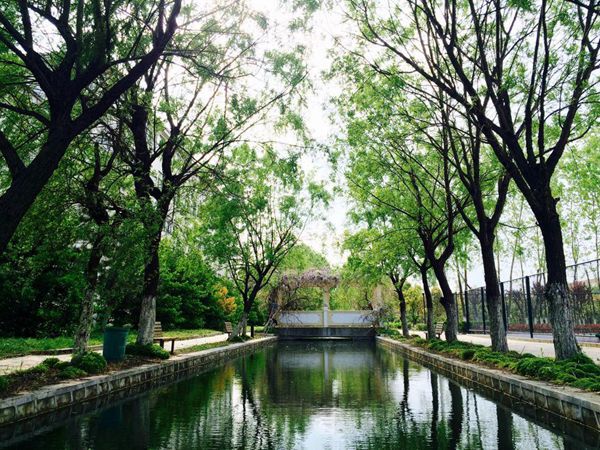 繼續(xù)隨性游走,一排排茂密的香樟樹陳列在路的兩旁,幽幽的清香伴隨著清風拂來。一座白色的小洋樓豁然出現(xiàn)在眼前,原來這是我校韓國留學生學習上課的地方。隨后漫步至一水池處,我校第八屆花燈節(jié)就在此處舉辦,當時,地燈、水燈、繡球燈等百余盞花燈被擺放在水池兩側。搖曳的燭光在朦朧月光的映照下更顯美麗。活動期間,兩樹之間拴上了紅繩,紅繩上掛滿了同學們書下的心愿,譬如:“希望今夜遇見女神”,“四級必過”等。“花燈節(jié)”那天,這里夜晚的寧靜悄悄溜走了,只見這里人山人海,熱鬧非凡。