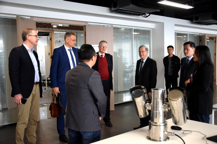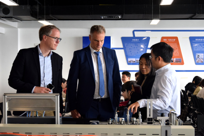 王其東陪同亞歷山大·施梅曼一行深入能源材料與化工學院和大眾學院,調研先進電池關鍵材料與技術重點實驗室、大眾學院校企培訓中心與校企實訓中心、大眾學院產教融合平臺實驗室。