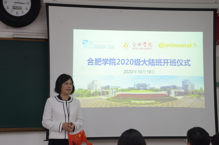 10月19日,合肥學院2020級(第五屆)大陸班開班儀式在二區(qū)生化樓220教室舉辦。合肥學院校長吳春梅、副校長陳秀、德國大陸馬牌輪胎(中國)有限公司總經(jīng)理王小驥應邀出席。先進制造工程學院院長呂剛主持儀式。