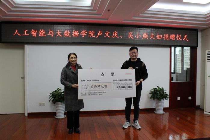 11月27日下午,人工智能與大數(shù)據(jù)學(xué)院2007級(jí)信息與計(jì)算科學(xué)專業(yè)優(yōu)秀校友盧文慶、吳小燕夫婦向?qū)W校捐贈(zèng)200000元,以此表達(dá)對(duì)母校的感恩之心和反哺之意,為母校40歲生日獻(xiàn)禮。