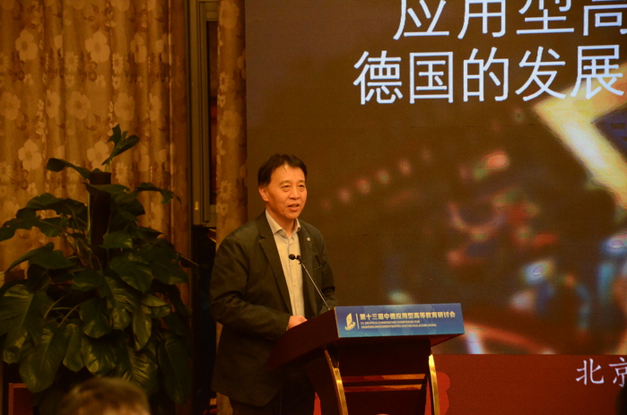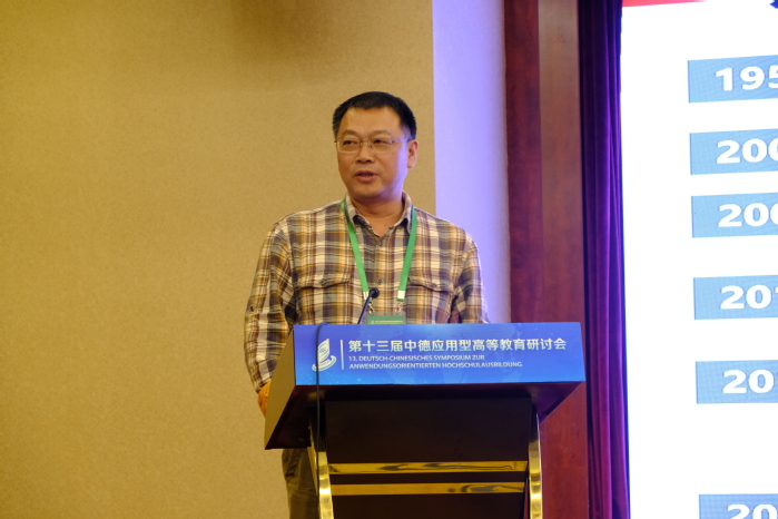 托馬斯·霍夫曼以《奧斯納布呂克應用科學大學中德合作碩士專業建設中與企業的融合》為題作報告。他表示,學校應采用專業理論知識與實踐相結合的教學方式。在中德合作碩士專業建設項目中,不僅要開設相關研討課,同時也與企業合作開展研發項目。企業對實踐技能的高要求間接推動學校對學生的實踐技術培養,以增強其創新能力和就業競爭力。