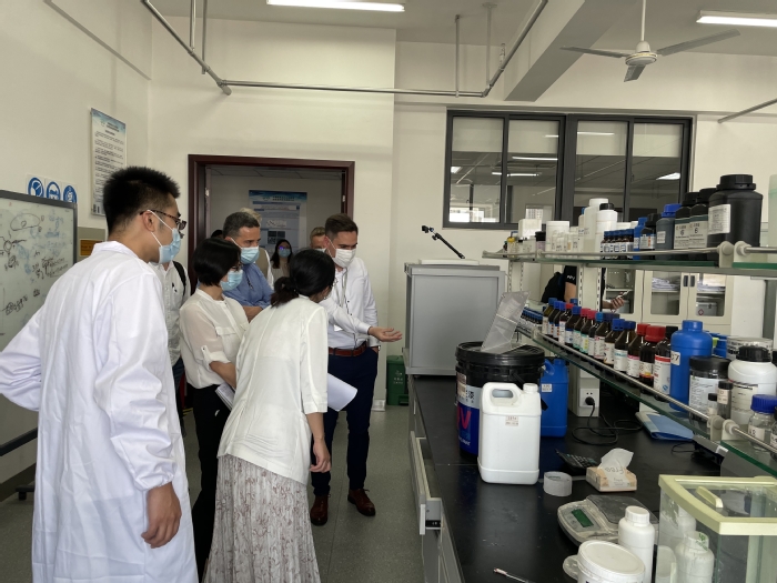 專家組首先來到學校的工程研究中心,實地考察了安徽省綠色涂料高性能助劑工程研究中心、先進電池關鍵材料與技術重點實驗室、安徽省現代電子控制與檢測應用技術協同創新中心,對校企共建研究中心給予指導。