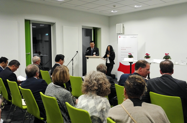 在11月12日研討會開幕式上,中國駐漢堡總領事孫從彬先生,安徽省教育廳副巡視員周元先生,下薩克森州科文部高等教育司司長米勒恩邁爾先生,奧斯納布呂克市副市長科勒斯女士,德國大學校長聯席會議(HRK)副主席、奧斯納布呂克應用科學大學校長拜爾特拉姆教授、合肥學院黨委書記蔡敬民教授分別致辭。來自中國20所高校和企業代表與德國14所高校和企業行會代表共100余人出席會議并圍繞“校企協同創新,推動地方發展”這一會議主題進行了座談。在接下來的分組討論中,與會者分別就校企在教研、科研領域的成功合作經驗及其在推動地方經濟文化發展中的積極作用,進行了介紹和展望。作為具有典型德國特色且備受與會者關注的“雙元制高等教育”這一主題,德國與會者通過報告和討論的形式作了詳細的闡述,我校也就即將與德國合作院校及企業開展的該領域國際合作工作進行了方案分享,再次展現了我校在此應用型高等教育嶄新合作領域的引領角色。