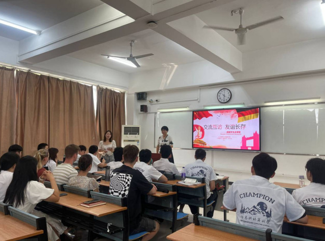 9月5日下午,一場(chǎng)別開(kāi)生面的“交流互訪友誼長(zhǎng)存”-德國(guó)學(xué)生進(jìn)課堂主題團(tuán)日活動(dòng)在36棟202教室隆重舉行。此次團(tuán)日活動(dòng)由2023級(jí)信息與計(jì)算科學(xué)專(zhuān)業(yè)學(xué)生周思雨主持,人工智能與大數(shù)據(jù)學(xué)院黨委書(shū)記牛欣、院團(tuán)委書(shū)記章云冉、專(zhuān)業(yè)負(fù)責(zé)人邵桂偉、專(zhuān)業(yè)班主任蔣雨燕、德語(yǔ)老師朱俊俏出席,全體23級(jí)信息與計(jì)算科學(xué)(中外)專(zhuān)業(yè)學(xué)生參加,四名德國(guó)交流生應(yīng)邀參加。