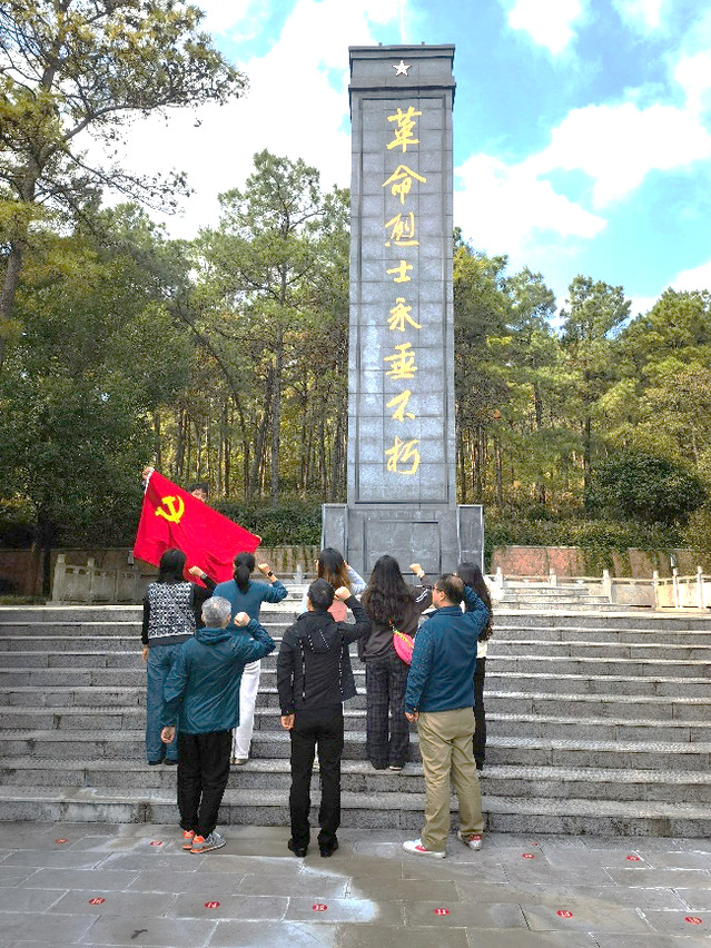 宣誓活動結束后,大家懷著崇敬之情參觀茶壺山烈士陵園,依次瞻仰革命烈士墓,駐足瀏覽英名墻上銘刻的烈士姓名和事跡簡介,重溫革命先烈英勇事跡,感受革命先烈崇高的思想境界、堅定的理想信念、巨大的人格力量和浩然的革命正氣,深刻緬懷為民族獨立、人民解放和國家富強、人民幸福作出巨大貢獻和犧牲的英雄烈士。
