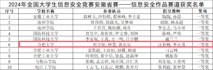我校網(wǎng)絡(luò)與信息安全團(tuán)隊(duì)在全國大學(xué)生信息安全競賽安徽省省賽中榮獲一等獎佳績