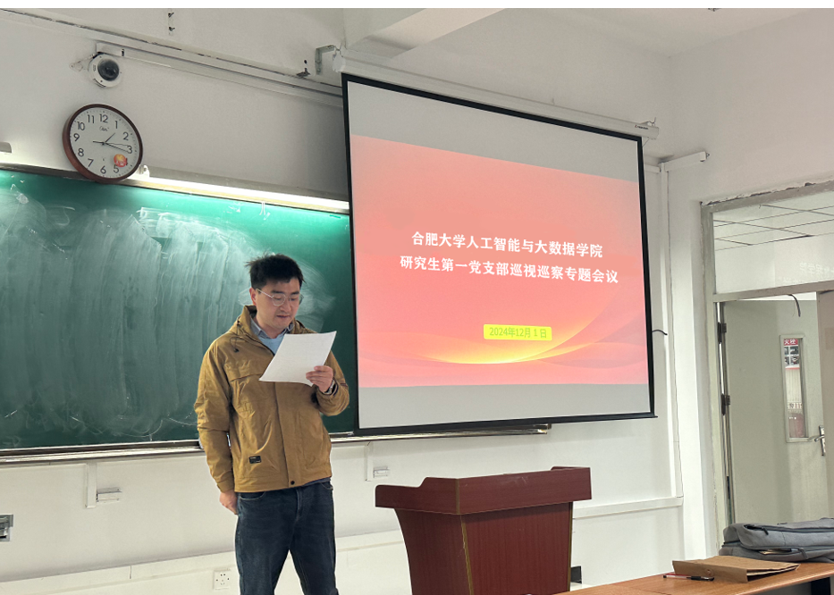 2024年12月1日下午,人工智能與大數據學院研究生第一黨支部在36棟210教室開展了巡視巡察專題學習,此次活動旨在深入貫徹習近平總書記關于巡視工作的重要指示精神,扎實做好研究生第一黨支部巡視巡察工作,以有力有效政治巡視促進黨支部高質量發展。