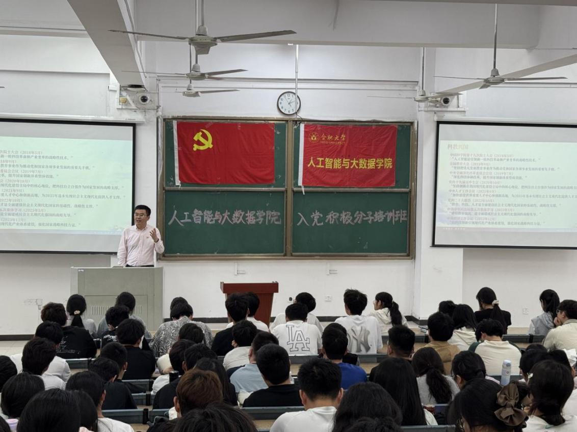 2025年4月17日中午,合肥大學(xué)黨委副書記、校長任永以《傳承校史精神,勇?lián)鷷r代使命》為題給人工智能與大數(shù)據(jù)學(xué)院入黨積極分子培訓(xùn)班學(xué)員們上了一堂精彩的黨課。