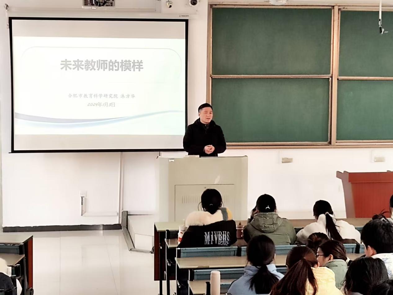 1月5日下午,我校榮幸邀請到了合肥市教育科學研究院教研員沐方華老師來我校進行了題為《未來教師的模樣》的教育專題講座。講座從下午3點50至5點在37棟三樓階梯教室展開,由余海峰院長、姚玉武主任和胡秀林老師以及全體20級、21級數學與應用數學專業學生參加。