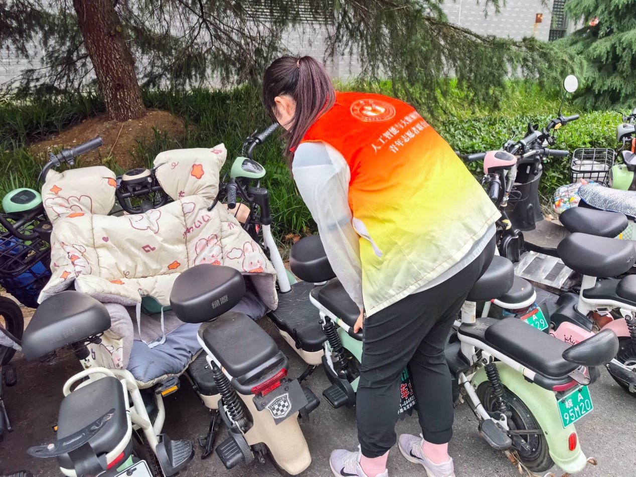 與此同時,志愿者們還投身于電動車規范停車的活動中。他們忙碌于校園內的停車區域,對亂停亂放的電動車進行細致的整理和擺放。在志愿者們的辛勤付出下,校園道路變得更加寬敞整潔,為師生們營造了更加舒適、安全的校園環境。