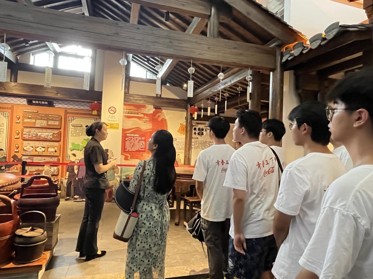 績溪是徽菜的發(fā)源地,717日下午,調研組的同學參觀了徽菜博物館,在講解員的帶領下,同學們逐一參觀各個展區(qū),詳細了解了徽菜的歷史淵源、發(fā)展歷程以及烹飪技藝,對徽菜文化的深厚底蘊有了更深刻的認識。徽菜博物館作為連接傳統(tǒng)與現代的文化橋梁,通過品嘗徽菜,同學們不僅領略到徽州的風土人情和燦爛的徽州文化,同時也激發(fā)了同學們參與文化傳承和推廣的熱情。