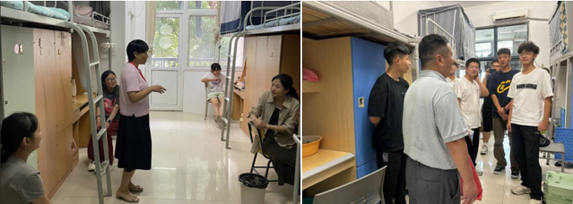 學院黨委書記牛欣、院長余海峰、黨委副書記姚蓓蓓、副院長陳圣兵、副院長許強等領導班子成員,以及24級新生班輔導員老師們一同前往新生宿舍區。他們分成多個小組,逐一走訪了新生宿舍,與新生們面對面交流,詳細了解他們的入住情況和生活需求。