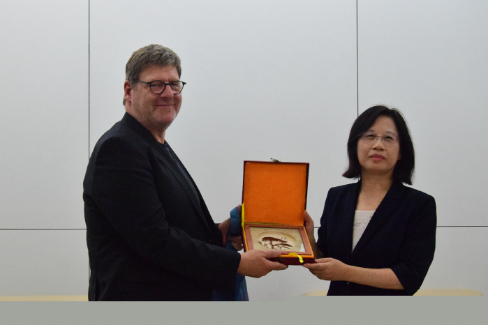 院長吳春梅在圖書館貴賓室會見來賓,副院長陳秀、國際交流合作處、大眾學院負責人陪同,雙方就加強雙邊合作與大眾學院建設達成系列共識。
