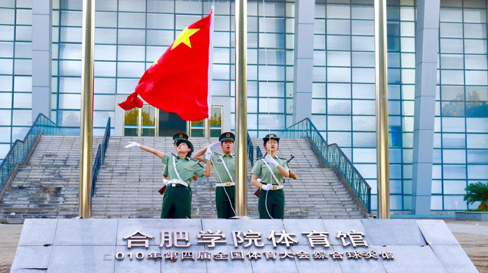 如果信念有顏色,那一定是中國紅。10月1日,迎著清晨第一縷陽光,合肥學院舉行慶祝中華人民共和國成立72周年升旗儀式。校國旗隊隊員邁著矯健的步伐,莊重地走向升旗臺。合院學子在國歌聲中,看五星紅旗冉冉升起,內心燃起無言的感動。為豐富國慶長假黨史學習教育資源,營造“處處能學、時時可學”的學習環境和濃厚氛圍,校園媒體矩陣聯動發力,為學生學習黨史提供豐富的紅色“養料”。黨委宣傳部、團委、語言文化與傳媒學院等各級微信公眾號分別推出線上音樂黨課、給祖國的三行情詩、國慶觀影指南、黨史回聲等特輯,通過創新學習載體和內容,引發情的共鳴、理的認同、精神上的震動,讓黨的理論、黨的初心扎根到青年學子心里。