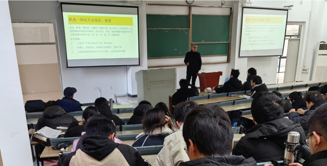 為幫助學(xué)生深入了解所學(xué)專業(yè),明確學(xué)習(xí)目標(biāo)與方向,機(jī)械系于12月31日邀請了安徽省舜泰自動化技術(shù)有限公司總經(jīng)理高志斌高級工程師來校,為24級機(jī)械系專業(yè)學(xué)生帶來了一場精彩紛呈的專業(yè)認(rèn)知報告。講座舉行現(xiàn)場座無虛席,氣氛熱烈。