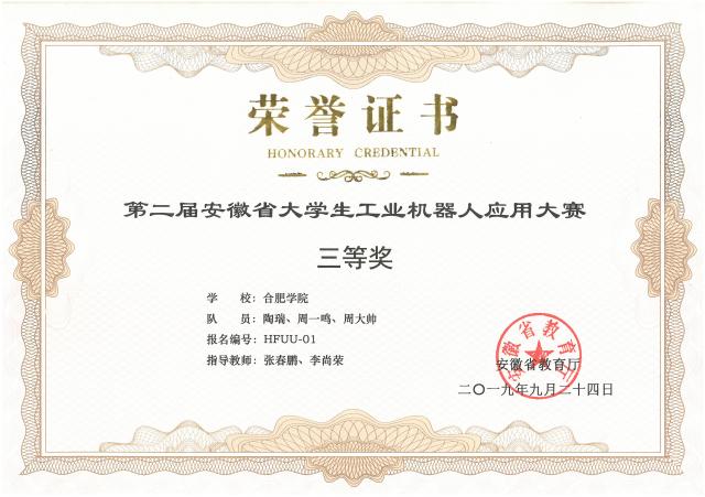 我校機械工程系于2019年9月第一次組隊參加了安徽省大學生工業機器人應用大,共1支參賽隊伍3人參賽;獲得省級三等獎1項。