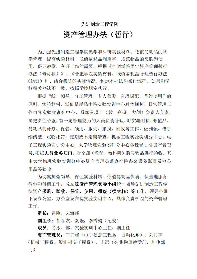 先進制造工程學院資產管理辦法