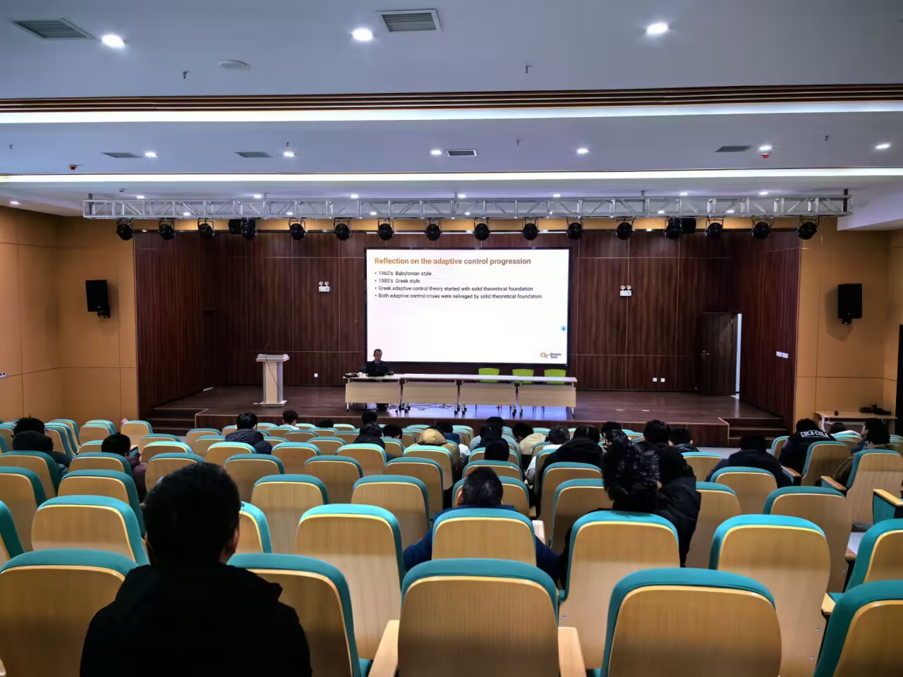 2023年12月18日(周一)上午九點(diǎn)半,在合肥大學(xué)南艷湖校區(qū)55棟205報(bào)告廳,23電子信息碩士生部分成員參加了由合肥大學(xué)科研處、先進(jìn)制造工程學(xué)院主辦,美國(guó)加州大學(xué)Ye-Hwa Chen博士主講的題為“The Character of Control Theory ”的學(xué)術(shù)報(bào)告。Ye-Hwa Chen 博士詳細(xì)介紹了控制論的歷史,從工業(yè)革命時(shí)期詹姆斯·瓦特創(chuàng)造性地提出了一種反饋轉(zhuǎn)矩來(lái)平衡蒸汽機(jī)的旋轉(zhuǎn)變化。到演變?yōu)楣诺淇刂疲俸髞?lái)發(fā)展為現(xiàn)代控制和后現(xiàn)代控制。講述了目前有許多成熟的控制方法是由創(chuàng)造性的工程師開(kāi)發(fā)的,它們從最優(yōu)性、適應(yīng)性、魯棒性和智能化等方面解決了工業(yè)中的實(shí)際問(wèn)題。最后帶同學(xué)們回顧發(fā)展過(guò)程,解答了一個(gè)自然的問(wèn)題:這些控制論背后的共同特征是什么?