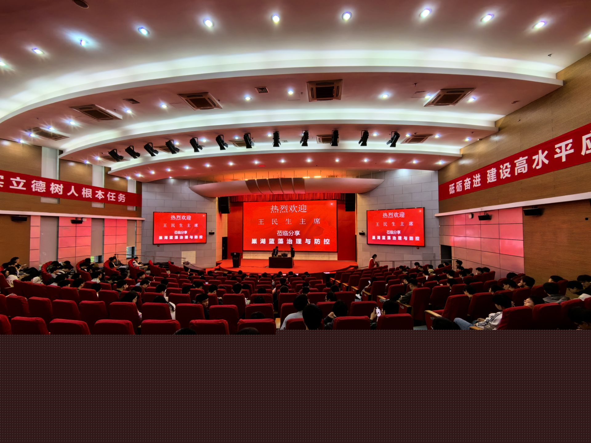巢湖藍藻治理與防控報告會2024年4月17日下午兩點半圖書館報告廳A舉行,23先進電子信息與機械研究生全體成員參加了該報告會。