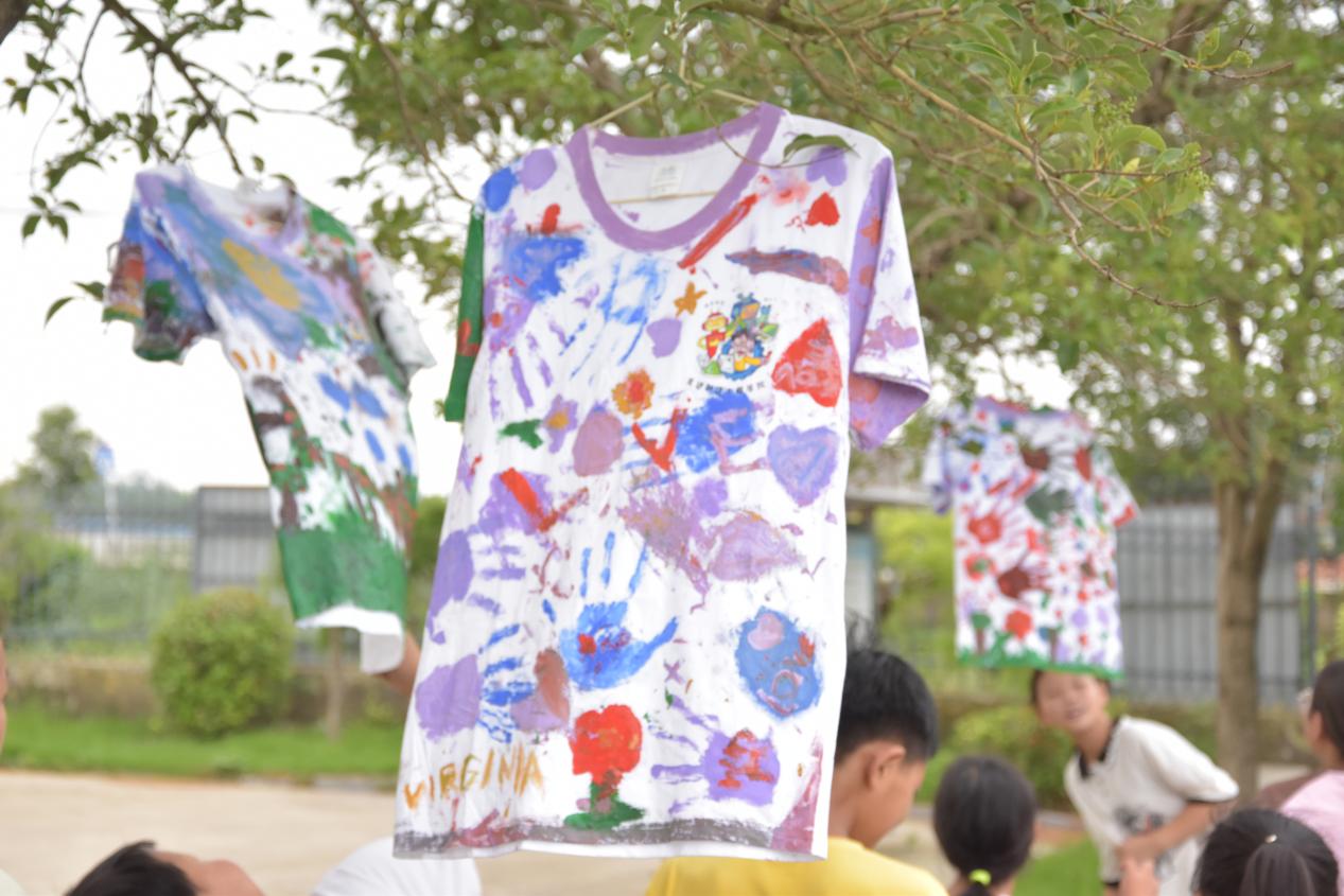 上午八時三十分,調研團隊成員準時開展校園支教。為使孩子們更好地理解與記憶知識,調研成員設計積分獎勵制來調動孩子的自主學習性。此外利用課間時間,帶領孩子們在衣服上涂鴉合影記錄這段特殊時光。