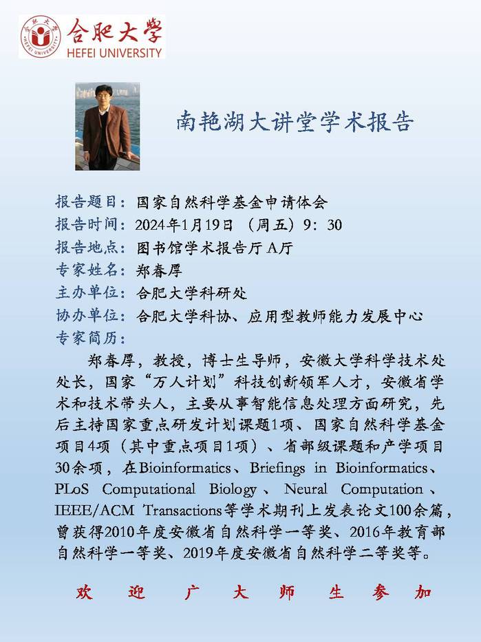 【南艷湖大講堂】國家自然科學基金申請體會
