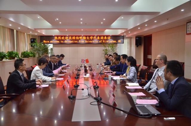 On April 16th, Prof. Cai Jingmin, Chair of HFU Council, meets the delegation from the University of Birmingham, led by its vice president professor Jonathan Frampton,  as well as Director of China School.