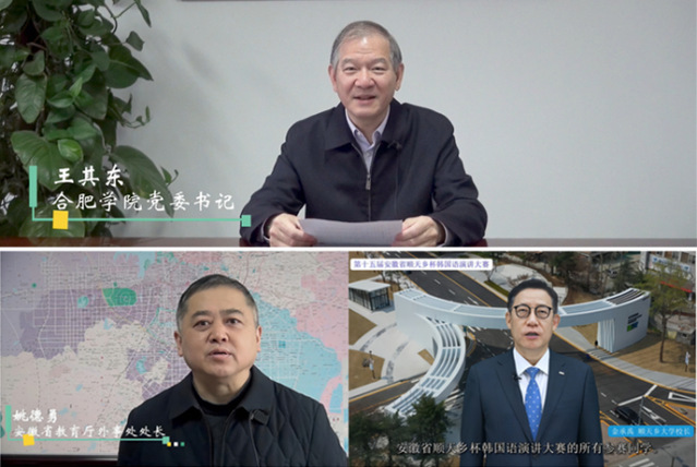 On December 9, the 15th “Soonchunhyang CupKorean Speech Contest,  hosted by Anhui Provincial Department of Education and organized by Hefei University and Soonchunhyang University, was successfully held in HFU. Wang Qidong, Chair of HFU Council, and Jin Chengyu, President of Soonchunhyang University(South Korea) delivered speeches respectively for its commencement. Three Professors from Soonchunhyang University, Li Zaihao, Piao Genshun and Zhang Youmei, judged the competition.