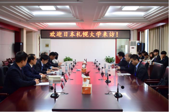 On November 28th, 2019, HFU President Wang Qidong meets the Sapporo University delegation led by its President Mr. Hiroki Arakawa.