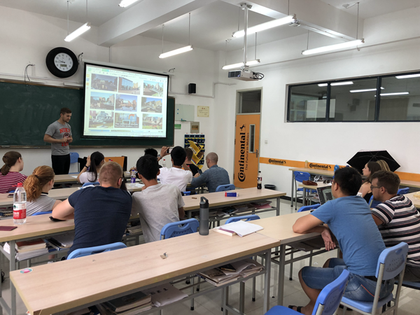 據悉,在我校國際交流合作處的支持與協調下,自2016年我校與德國埃姆登/里爾應用科學大學、德國大陸馬牌輪胎公司共同開設“大陸班”,設置雙元制高等教育模式的機械設計制造及其自動化專業以來,每個暑期都安排大陸班學生與德國留學生進行語言及文化交流。2017年暑期,首屆大陸班學生與來自德國的5名留學生進行了交流,彼此之間建立了深厚的友誼。今年活動在國際交流合作處、教務處和機械系的共同努力下,進一步豐富了活動內容,拓寬了交流渠道,優化了交流形式,翻開了“交流過動”活動的新篇章。