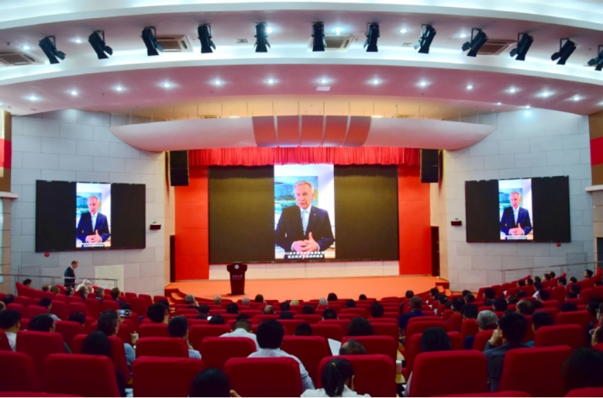 Feng Xiao, Dekan der Chinesisch-Deutschen Hochschule für Angewandte Wissenschaften (CDHAW)der Tongji Universit?t, pr?sentierte einen Bericht mit dem Titel ?Integration von Wissenschaft und Technik, Zusammenführung von Industrie und Bildung: Aufbau von Mechanismen für eine gegenseitig unterstützende und interaktive Innovation in Hochschulen“.