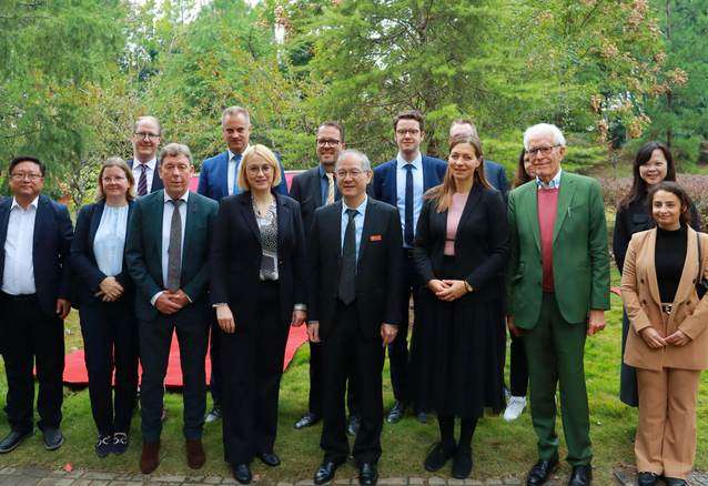 2024年10月27日上午,德國奧斯納布呂克市市長卡塔琳娜·普特女士及政界代表團訪問我校,與我校領導共同參與中德友誼林植樹活動以及德國學生徽文化秋令營結業儀式。黨委書記王其東,合肥市人民政府外事辦公室副主任劉洋出席活動,黨委委員、宣傳統戰部部長賈峰,國際交流合作處處長張慧,國際交流合作處副處長孔春華、潘洪陪同出席。