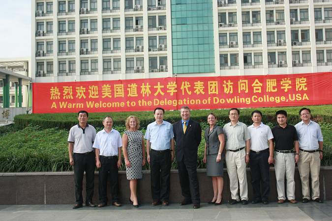 聽取蔡院長的介紹后,布朗校長介紹了道林大學在地理位置、專業設置和國際合作等方面的情況,他說道,美國道林大學是一所私立的文科性綜合院校,于1955年建立于美國紐約長島,排名北部四級,擁有傳統文科專業,主要進行小班授課,學校注重理論教育和技能培訓相結合,不僅鼓勵學生出國留學還歡迎友好學校學生來其校留學。同時,他指出合肥學院在本科專業設置以及教育教學模式上與道林大學很相近,這也加大了兩校合作的可能性。