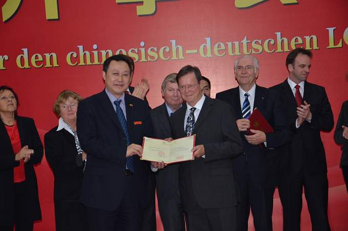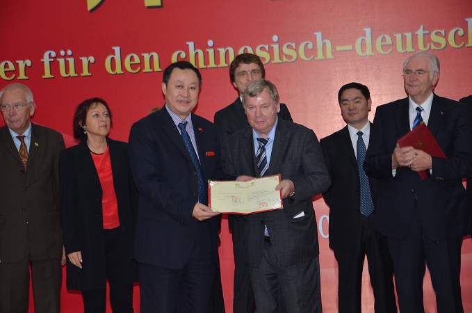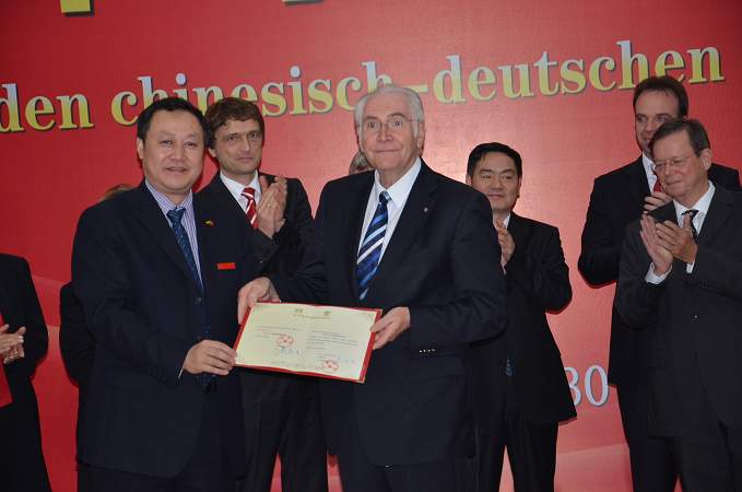 蔡院長為漢諾威中國中心董事長亨茨-迪特?戈德克博士頒發(fā)榮譽教授證書