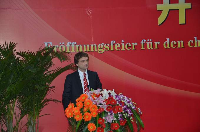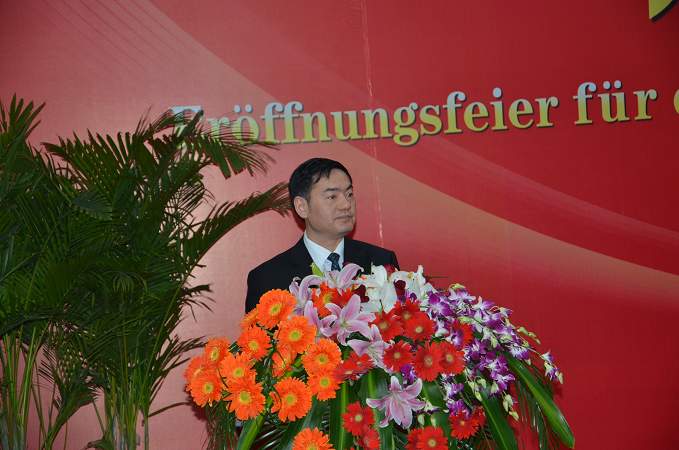 蔡敬民院長代表學(xué)院發(fā)言,他向那些積極促成這一項目建成的各方表示衷心的感謝。他說,我國目前急需物流管理人才,而奧斯納布呂克應(yīng)用科技大學(xué)物流管理專業(yè)作為歐盟認(rèn)證專業(yè),有很高的知名度。他鼓勵同學(xué)們把握機(jī)遇,努力學(xué)習(xí)。