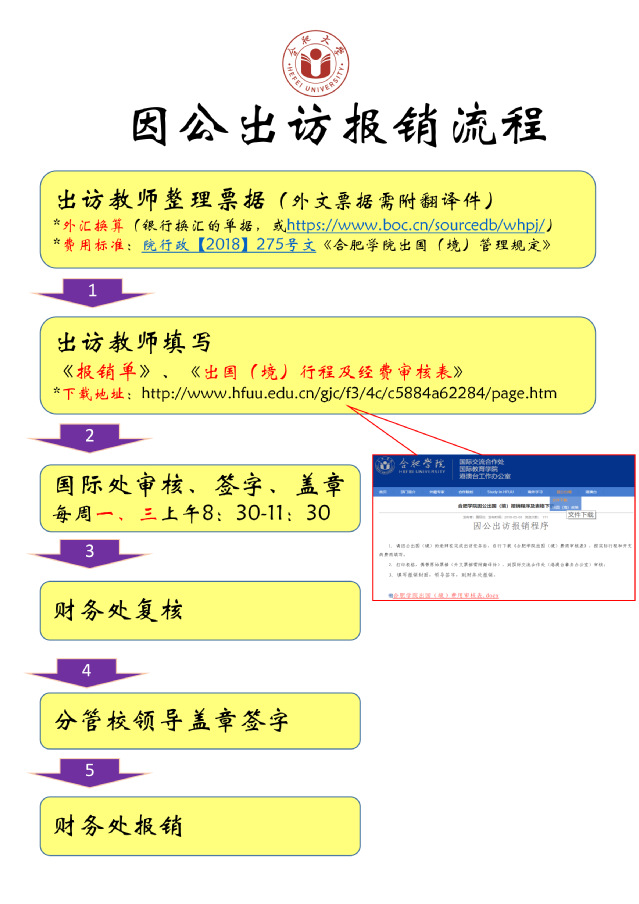 1. 請(qǐng)因公出國(guó)(境)的老師在完成出訪任務(wù)后,自行下載《合肥大學(xué)出國(guó)(境)費(fèi)用審核表》,按實(shí)際行程和開支的費(fèi)用填寫;