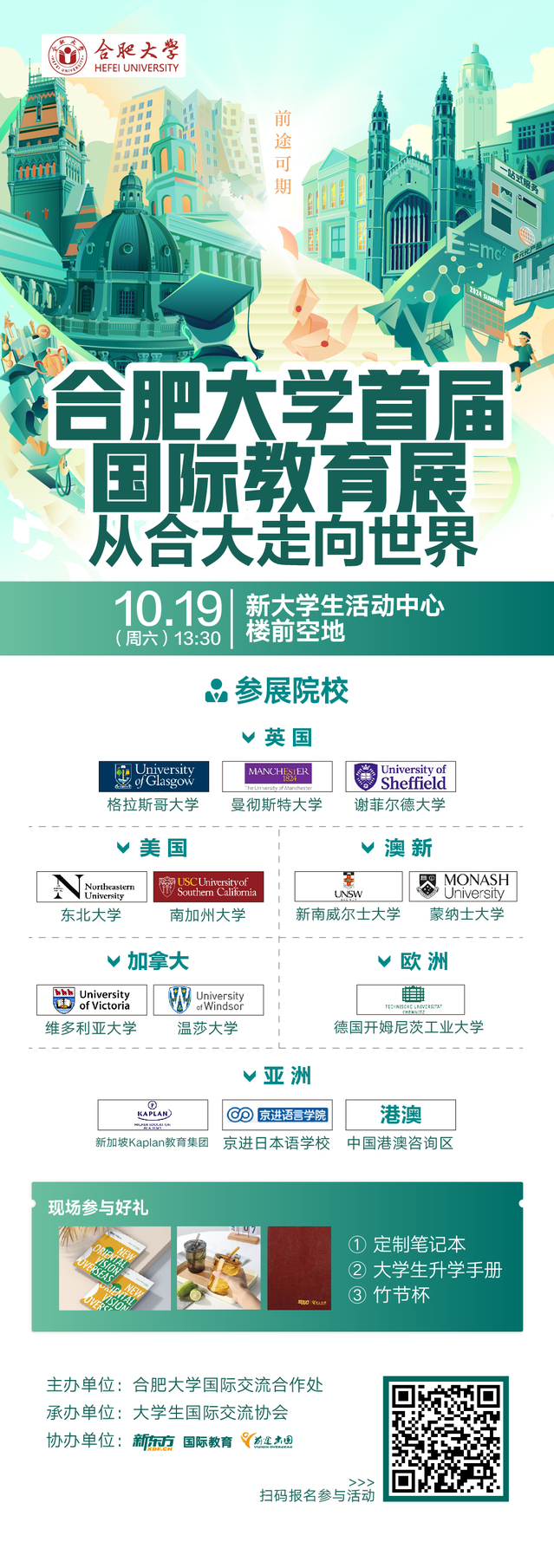 為進一步推動學校國際化發展工作,拓展學生國際視野,學校將舉辦第一屆國際教育展。此次展會將邀請多家海外知名院校參展,面對面為學生解答關于海外高校招生錄取、專業選擇、海外學習生活等問題。具體事宜通知如下: