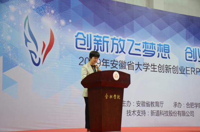 5月11日上午,2019年安徽省大學生創新創業ERP管理大賽開幕式于我校二區體育館拉開帷幕。安徽省創新創業教育辦公室主任、合肥學院大學生創新創業教育中心主任劉沛平,新道科技股份有限公司安徽省區總經理任子宜,銅陵學院會計學院院長周建龍,阜陽師范學院商學院院長程向陽,合肥學院管理系黨總支書記宣文,合肥學院管理系黨總副書記張永軍蒞臨開幕式,主任劉沛平擔任主持人,他表達了對到場參賽人員的熱烈歡迎以及對志愿者們的衷心感謝。接著,管理系黨總書記宣文上臺致辭,她表示,此次大賽的舉辦,為安徽省高校商科教育教學改革、展示專業教學成果提供了很好的機會,也是推進產教融合和人才培養模式改革的重要抓手,成為了提高學生實踐能力的重要平臺,她預祝此次大賽取得圓滿成功、參賽選手取得優異成績。最后,由管理系黨總副書記張永軍宣布比賽正式開始。