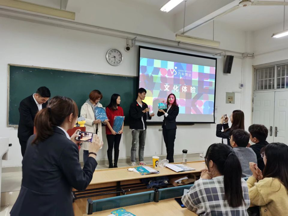 2020年10月20日,萬科物業(yè)2021屆校園招聘會召開,16級畢業(yè)生倪濤濤主持會議,會議以熱場小活動的形式開場,氣氛活躍。在倪濤濤介紹萬科物業(yè)巨大潛力及業(yè)務(wù)布局后,在座學(xué)子踴躍向招聘人員提出相關(guān)問題,他們都一一回答,讓同學(xué)們對萬科物業(yè)有了深刻了解。