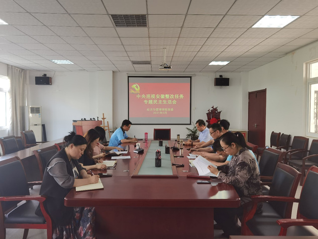 2021年5月31日,為深入學(xué)習(xí)貫徹習(xí)近平新時(shí)代中國特色社會主義思想和黨的十九屆五中全會精神,全面貫徹落實(shí)黨中央及省委決策部署,落實(shí)中央巡視反饋意見安徽整改暨新一輪深化“三個(gè)以案”警示教育工作,根據(jù)相關(guān)會議精神和文件要求,經(jīng)濟(jì)與管理學(xué)院黨委書記楊學(xué)春主持召開中央巡視安徽整改任務(wù)專題民主生活會,學(xué)院黨委委員、科以上干部和非黨員處級干部院長陳江華參加。