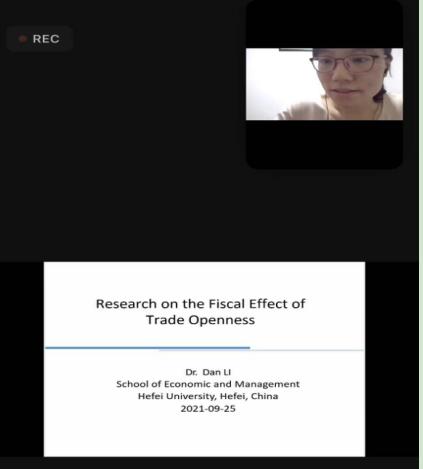 我院李丹博士就“貿易開放的財政效應研究”為主題進行演講。