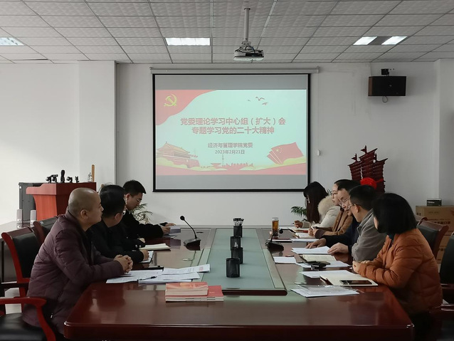 2023年2月21日上午,經(jīng)濟(jì)與管理學(xué)院黨委理論學(xué)習(xí)中心組(擴(kuò)大)會順利召開。會議由經(jīng)濟(jì)與管理學(xué)院黨委書記倪澤強(qiáng)主持,經(jīng)濟(jì)與管理學(xué)院院長陳江華、黨委委員及各黨支部書記參加了學(xué)習(xí)。