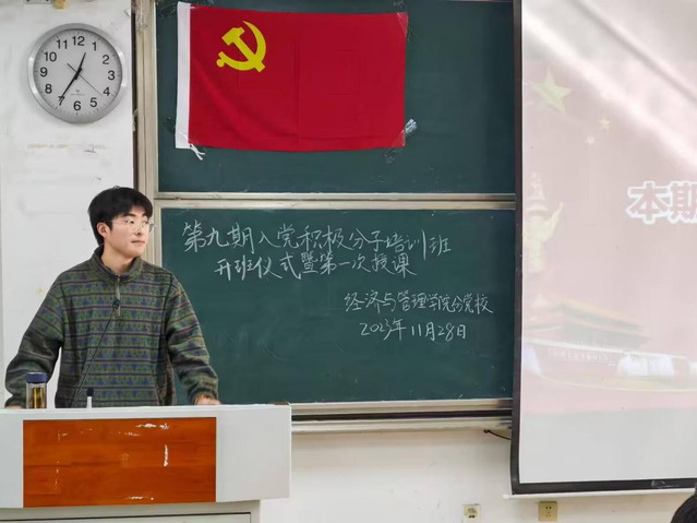 緊接著,第九期入黨積極分子培訓(xùn)班班主任、金融學(xué)學(xué)生黨支部書記陳維浩發(fā)言。陳維浩就舉辦入黨積極分子培訓(xùn)班的重要意義以及如何端正入黨動機(jī)進(jìn)行了分享,向?qū)W員們提出要求,作出展望,期望所有學(xué)員能夠積極向黨組織靠攏,增強(qiáng)組織觀念,并在學(xué)習(xí)、生活各方面發(fā)揮先鋒模范作用。