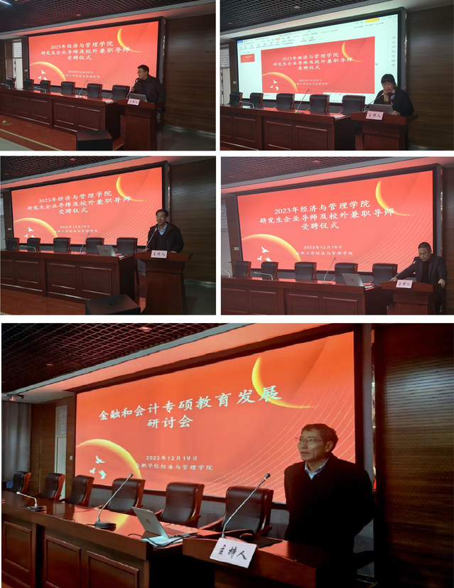 12月19日下午,經濟與管理學院于一期校園六棟一樓報告廳召開金融和會計專碩教育發展研討會,經濟與管理學院領導、校外兼職導師及企業導師、校內導師代表、投資金融系系主任、財務會計系系主任、金融和會計專碩點負責人及23級金融專碩和會計專碩研究生參加會議,副院長吳悅主持會議。