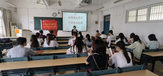 2024年6月7日經濟與管理學院工商管理學生黨支部在一期4棟301教室開展“加強黨紀學習,嚴肅作風紀律”主題黨課,支部書記姚璇老師帶領全體黨員學習《中國共產黨紀律處分條例》。