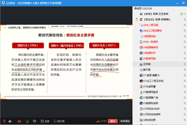 為了加強對入黨積極分子的培訓工作,深化黨的性質與指導思想,進一步提高入黨積極分子的黨的基礎理論素養,522日晚六點半,材化學院第十七期入黨積極分子培訓于線上順利開展。此次授課由材化學院黨委副書記王玉主講。