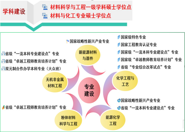學院擁有碩士和學士二級學位授予權。現有材料科學與工程一級學科碩士學位以及材料與化工專業碩士學位兩個授權,已形成了區域優勢明顯、目標明確的材料保護與安全、材料化工與環保、新能源材料與技術三個特色方向。現有化學工程系以及材料科學與工程系,分別設立化學工程與工藝能源化學工程2本科專業,以及無機非金屬材料工程粉體材料科學與工程新能源材料與器件2022年獲批)3本科專業。化學工程與工藝業為國家級特色專業、國家級和安徽省一流本科專業建設點,并率先在全校通過教育部工程專業認證能源化學工程無機非金屬材料工程專業均為安徽省一流本科專業建設點。學院與德國企業以及區域重點企業開展深度雙元制本科合作辦學和研究生培養,與大眾汽車(安徽)有限公司合作創辦無機非金屬材料工程(電池技術方向大眾班,也是我校大眾學院重點打造的本科專業之一。